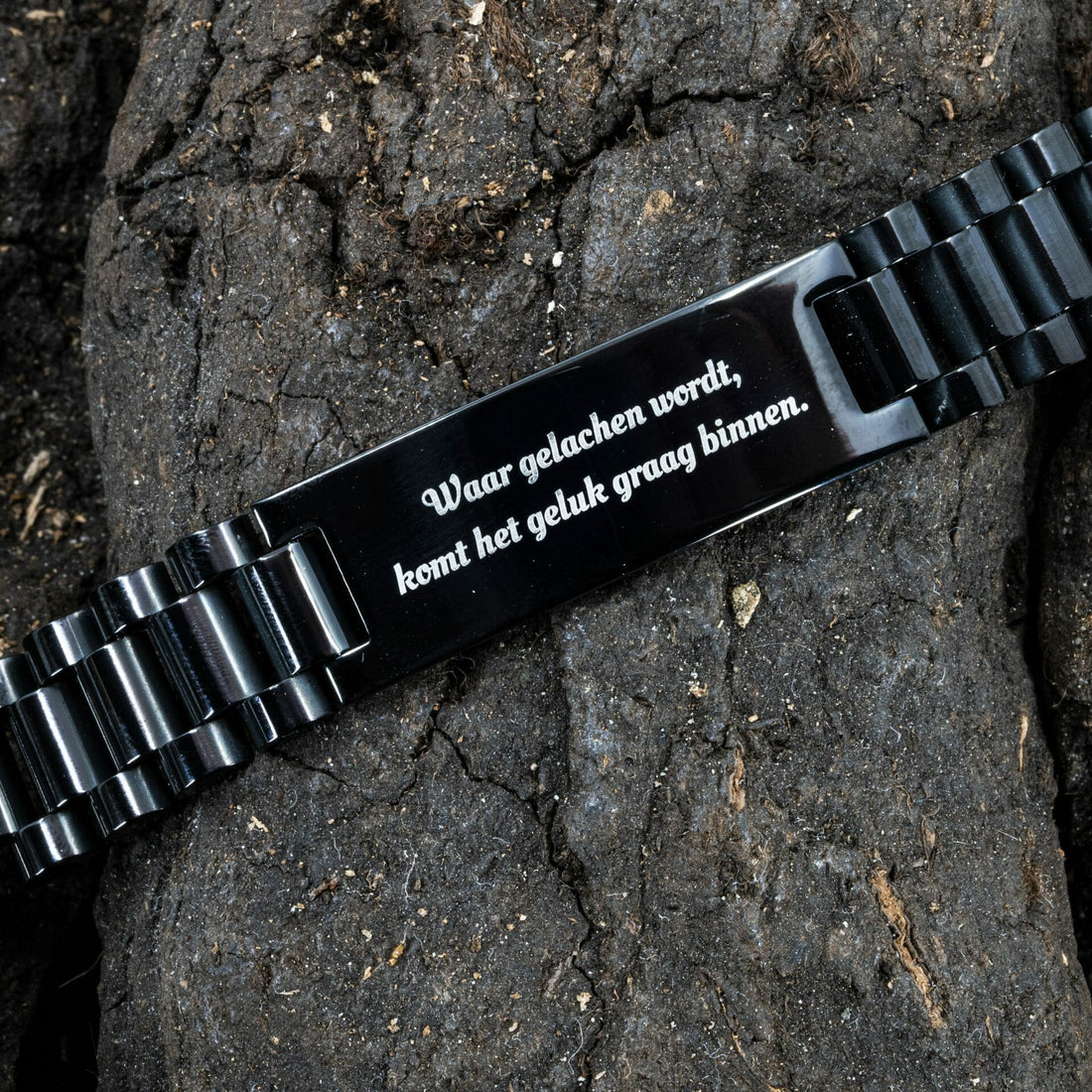 Magneet Armband - Black carbon + eigen tekst of symbool