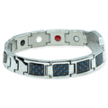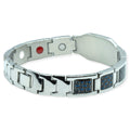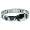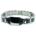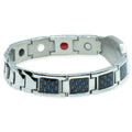 De Magneet Armband - Blauw carbon + eigen tekst / symbool is gemaakt van hoogwaardig roestvrij staal en carbon, waardoor hij niet alleen mooi is, maar ook nog eens lang meegaat. Kies voor gezondheid en stijl met deze prachtige armband!