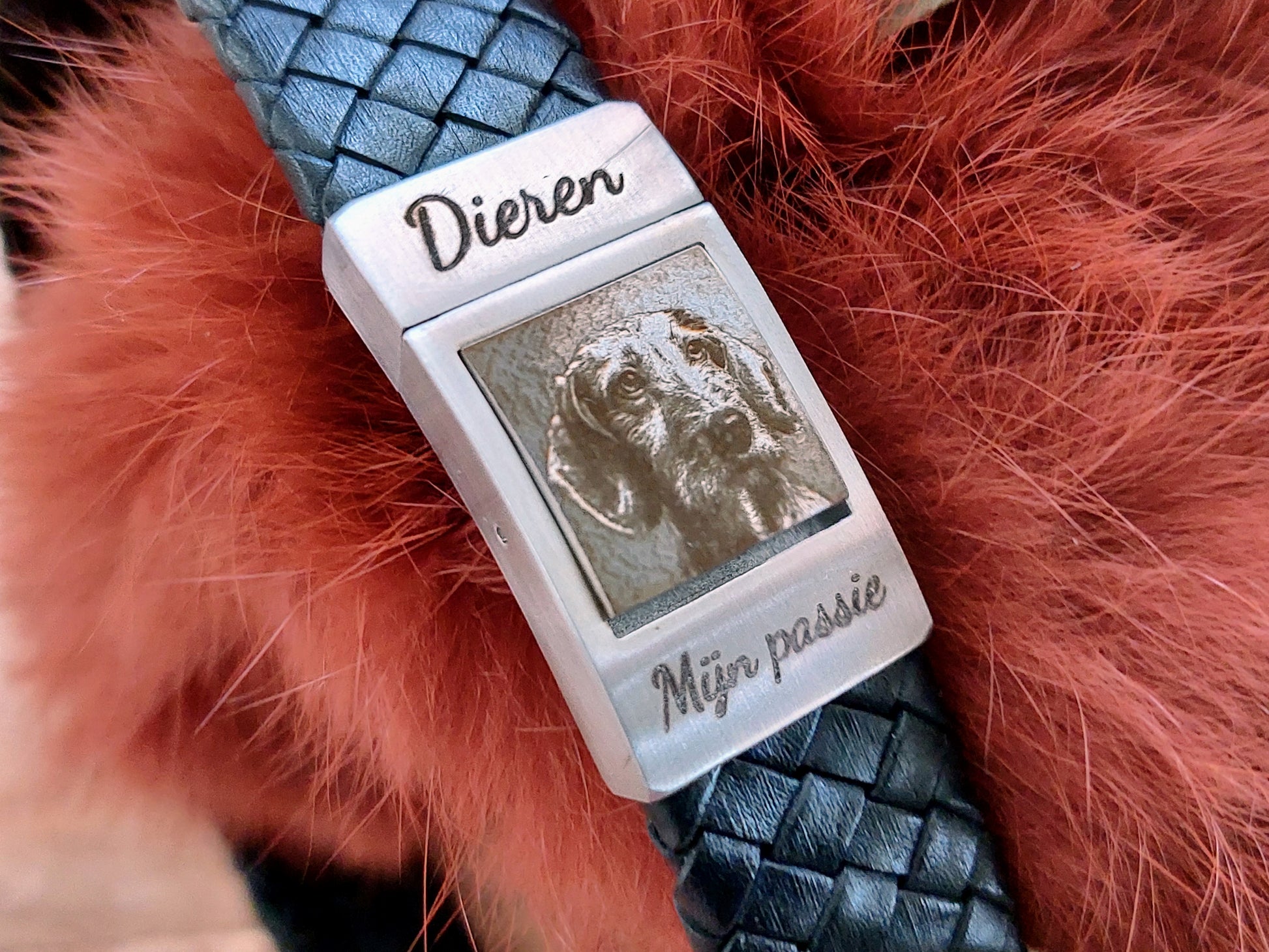 Pootafdruk of huisdier foto op armband- Gevlochten leer