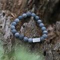 De Frosted Agaat ontstaat door de steen te verhitten waardoor er barsten ontstaan die goed zichtbaar zijn in de kralen van deze armband. De natuurstenen kralen hebben een grootte van 8mm en zijn gemaakt van verweerde fire-cracked blauwe Agaat. Deze armband is niet alleen mooi om te zien, maar ook nog eens heel comfortabel om te dragen.