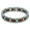 Met zijn unieke kleur en textuur, geeft het Rood Sandelhout deze armband een speciale uitstraling. Het hout loopt als een rode draad door het midden van de armband, waardoor het geheel er nog aantrekkelijker uitziet.