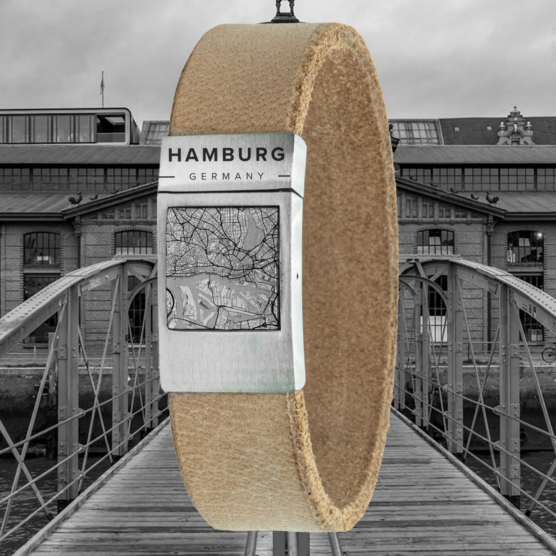 Kaartarmband <b>Lichtbruin</b> leer met eigen stad