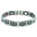 Ben je op zoek naar een stijlvolle en gezonde toevoeging aan je sieradencollectie? Dan is onze magneet armband Oslo wellicht iets voor jou! Deze armband is niet alleen gemaakt van hoogwaardig roestvrij staal, maar bevat ook zwarte keramische accenten in iedere schakel. Zo biedt deze armband voor ieder wat wils.