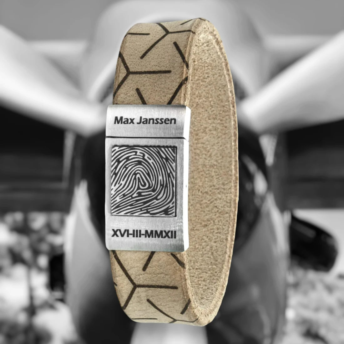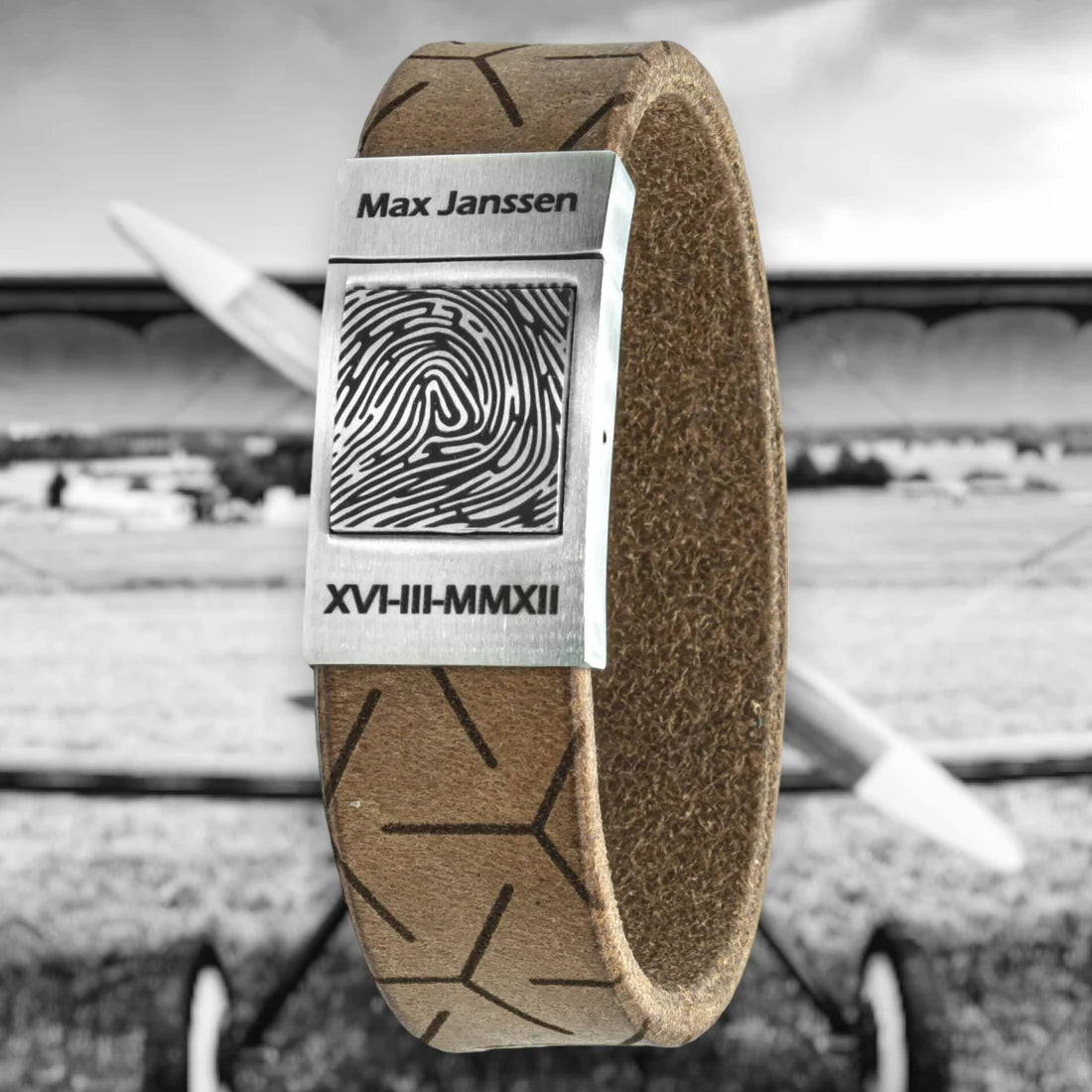 Kies voor de Leren Vingerafdruk Armband - Pilots EDITION - Zwart / Bruin / Gevlochten en draag jouw persoonlijke verhaal om je pols. Met deze unieke armband ben jij verzekerd van een bijzonder sieraad dat niet alleen mooi is om te zien, maar ook veel emotionele waarde heeft.