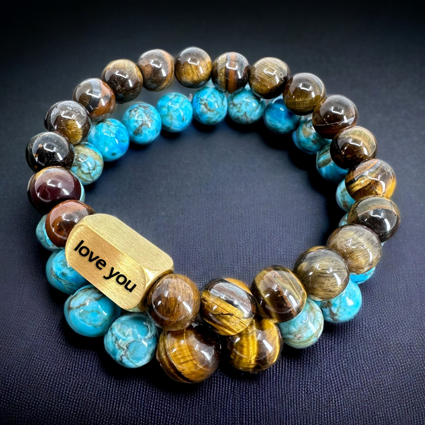 De eerste armband is voorzien van Tijgerogen 8mm kralen en een goudkleurige schakel. Maar dat is nog niet alles! Je kunt deze armband namelijk zelf graveren met je eigen tekst of icoontje. Zo voeg je een persoonlijk tintje toe aan dit prachtige sieraad.