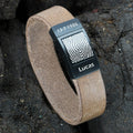Vingerafdruk armband - Gevlochten leer met Zwarte schakel